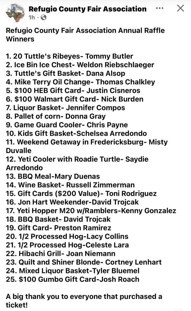 RCFA Raffle Winners